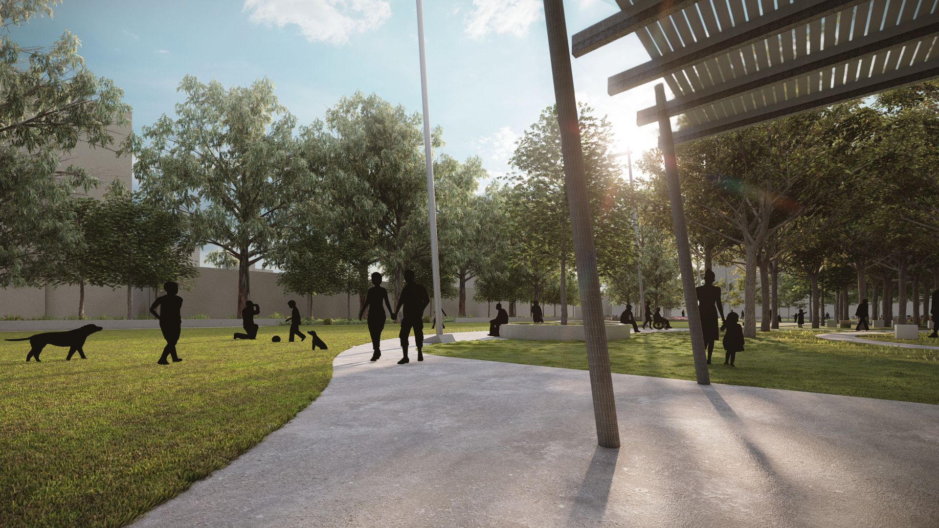 【綠色基盤】配置林蔭休憩及開放草坪,提供優質的綠色空間,提供個人沉思獨處、陽光午餐、閱讀、家庭聚會、朋友交誼等活動發生。