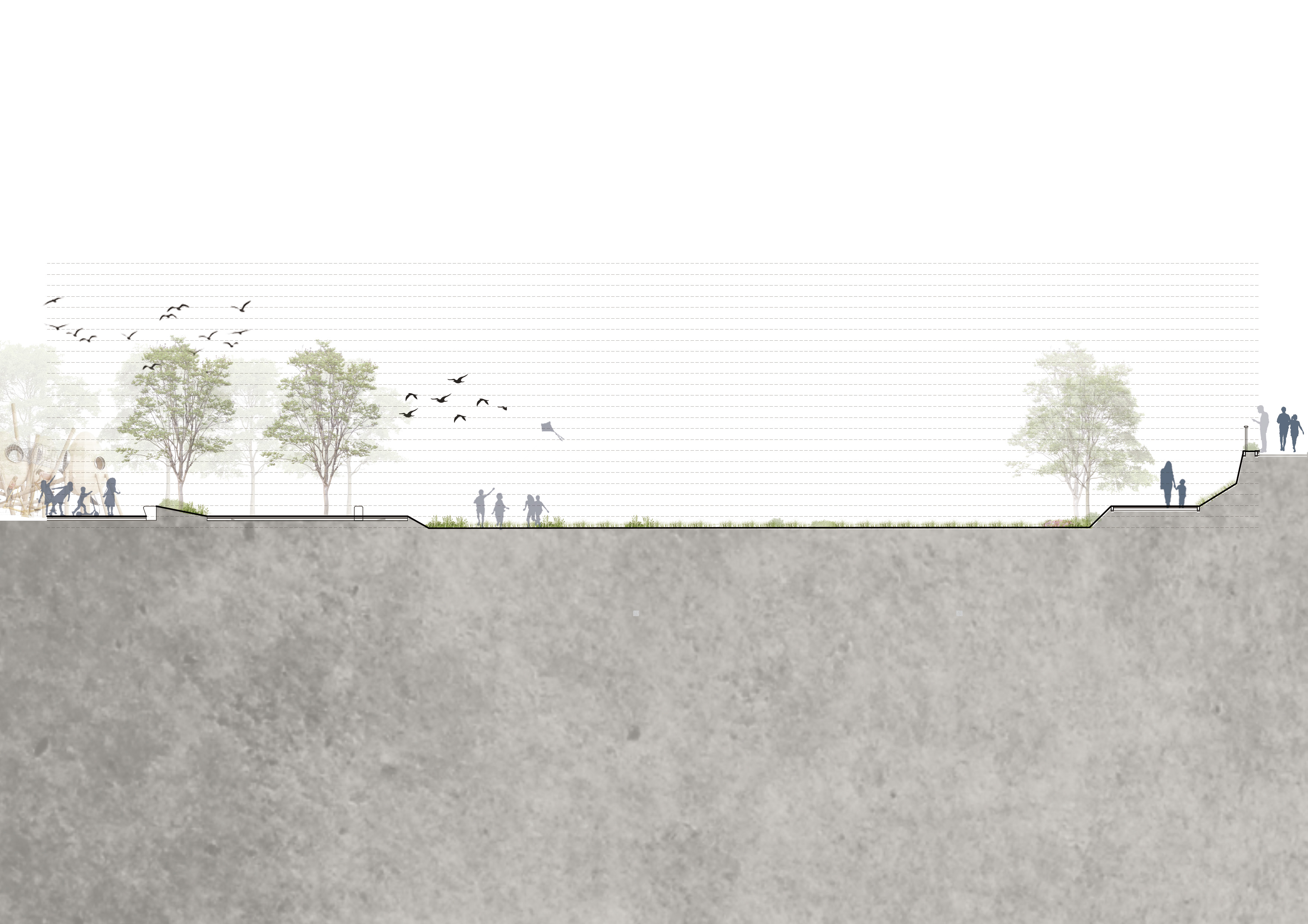 『綠色』可呼吸、建康的大地景觀:建構優質的綠色環境,讓居民的煩憂心情得到解放。藉由濃密的綠色樹下空間、