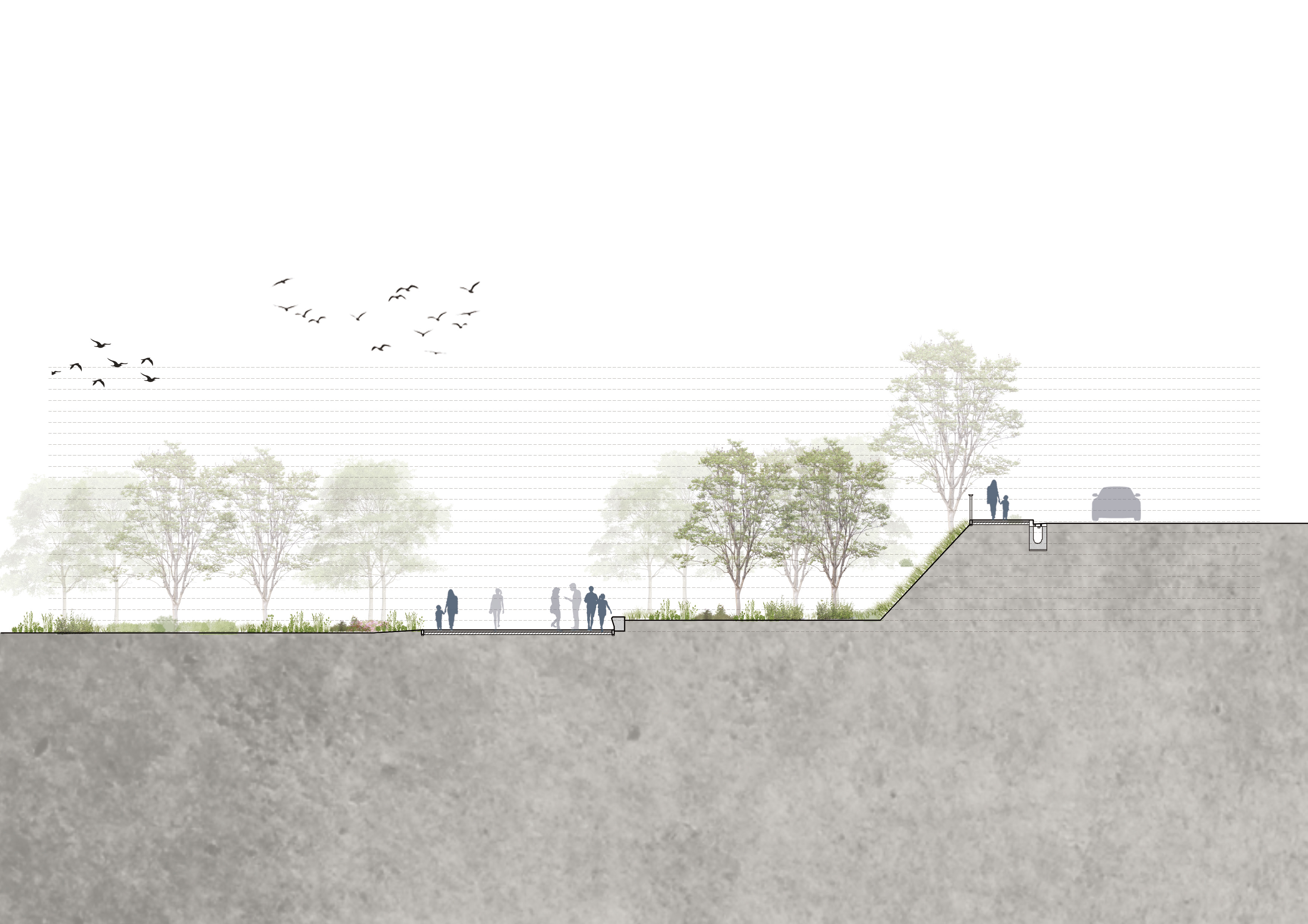 環境的營造為主要訴求,珍視自然之水綠資源,透過增加透水鋪面、加強基地保水、增加綠地面積,展現多樣的綠